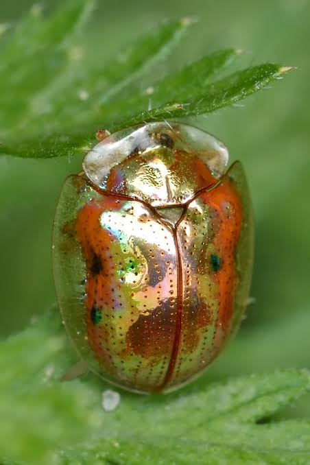 Los casidinos (Subfamilia Cassidinae) comúnmente llamados escarabajos tortuga son parte de una gran familia de escarabajos herviboros llamada Chrysomelidae, la cual posee un gran numero de especies, formas, colores y tamaños muy variados. El nombre común de escarabajos tortuga se debe a la extensión que presentan sus alas anteriores (élitros) a manera de escudo, confiriéndoles una forma redonda u ovoide que asemeja a un caparazón de tortuga. Son un grupo ampliamente distribuido en los trópicos, particularmente en la región neo tropical. Lo curioso de este grupo en su color a brillantina en la parte dorsal. Por ejemplo en las siguientes imágenes vemos al escarabajo tortuga dorado (Charidotella sexpunctata) su principal característica es su brillo como si estuviera bañado en oro, sin embargo el color puede cambiar en su caparazón simulando al de una mariquita de color rojo con manchas negras, este cambio de tonalidad se logra por medio de válvulas microscópicas que controlan los niveles de humedad bajo su caparazón. Son originarios de América del Norte.